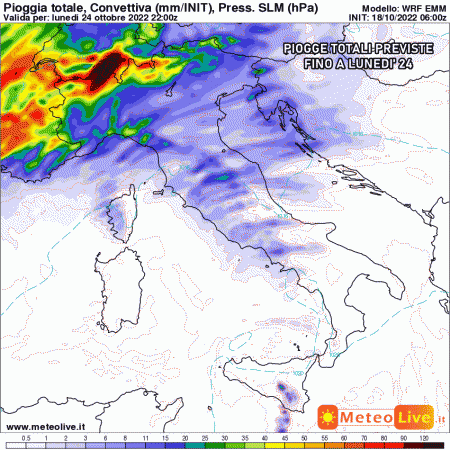 Venerdì 21 ottobre: piogge e rovesci sparsi al nord Italia, specie sulle Alpi e in Liguria centro-orientale. Nubi in aumento al centro, stabile e soleggiato al sud con clima molto mite.