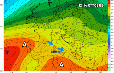 Sabato 15 ottobre: anticiclone in rinforzo su centro e sud Italia, nubi in aumento al nord con rischio piogge sparse al nordovest.