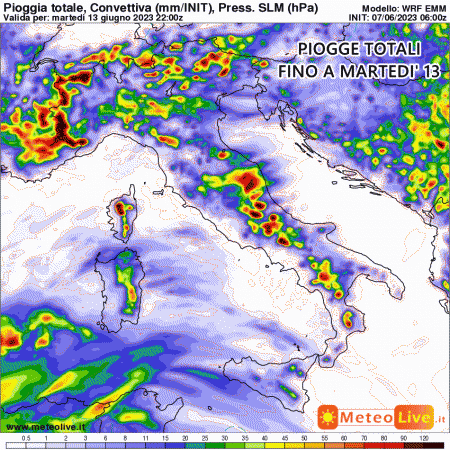 Lunedì 12 Giugno: temporali sparsi e disorganizzati da nord a sud, prevalentemente nelle zone interne e montuose. Temperature stazionarie.