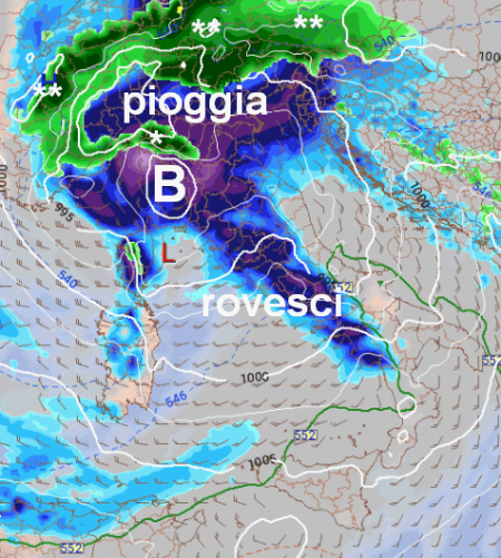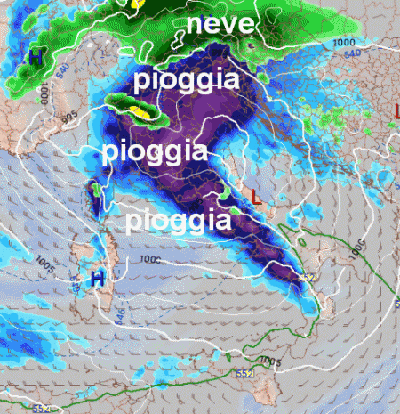 Le precipitazioni risulteranno più intense tra sabato sera e domenica mattina e sulle Alpi sono attese nevicate anche moderate ma con limite della neve oltre i 900-1000m, con le solite eccezioni per le vallate più strette e superiori, neve anche su nord Appennino più o meno alle stesse quote, niente da fare invece sui restanti settori appenninici, solo in vetta, troppo caldo.