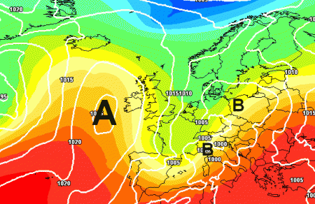 Una vera coltellata al tessuto anticiclonico mediterraneo, messa in opera dalle correnti fredde provenienti dal nord Atlantico.