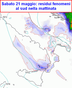Sabato un cuneo anticiclonico proteggerà il nord e il centro regalando a costoro una bella giornata di sole (felice chi si dovrà sposare) mentre al sud in mattinata continueranno a giungere spifferi freschi da nord con annuvolamenti irregolari e residui rovesci, in rapido esaurimento.