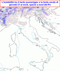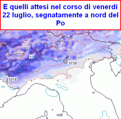 Da giovedì sera però infiltrazioni di aria progressivamente meno calda raggiungeranno in quota il nord, attivando localmente temporali anche di forte intensità, segnatamente a nord del Po, ma possibili anche più a sud.