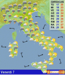 La situazione tenderà a migliorare già nel fine settimana, specie al meridione e su parte delle regioni centrali; al nord e sulla Toscana permarranno invece condizioni di variabilità; il sole giocherà a nascondino con le nubi e di tanto in tanto qualche rovescio o temporale potrebbe interessare soprattutto i rilievi e nelle ore pomeridiane.