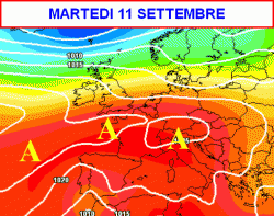 La fase culminante si collocherà tra martedi 11 e venerdì 14 settembre; in questo frangente il bel tempo sarà esteso a tutta la nostra Penisola, accompagnando un progressivo aumento delle temperature specie sulle Isole ed i settori di ponente.