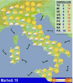 Il temporaneo e parziale cedimento dell’alta pressione sul Mediterraneo centro-occidentale determinerà alcuni annuvolamenti bassi lungo le regioni tirreniche, sulla Sardegna e su parte delle regioni settentrionali fino a mercoledi 20 febbraio.