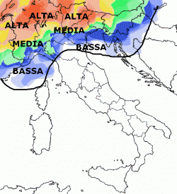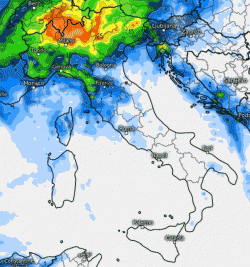 Le piogge interesseranno soprattutto le regioni centrali e il nord-est, con neve in Appennino sopra i 1000-1200 metri. Ancora a secco il nord-ovest a parte i soliti settori alpini di confine e forse la Liguria orientale, dove potrebbe arrivare qualche rovescio.