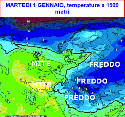 Tra martedi 1 e mercoledi 2 gennaio aria fredda sull’Italia, con clima ventoso, freddo e qualche spruzzata di neve a bassa quota sul medio Adriatico al sud.