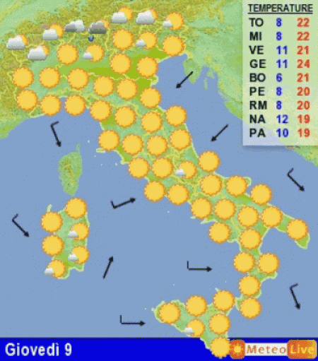 Se volete delucidazioni sul tempo a lungo termine leggete la rubrica Fantameteo; per il momento ecco la linea di tendenza del tempo fino a mercoledi 15 aprile.