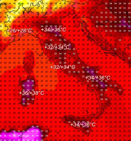 Almeno fino alla metà della settimana le regioni del meridione non usciranno dalla forte ondata di caldo che promette ancora temperature vicine alla soglia dei 40 gradi. Le regioni più soggette a questa situazione persistente di caldo saranno Puglia, Basilicata, Calabria e Sicilia. Tra giovedì e venerdì aria un po’ più fresca dovrebbe spingersi a raggiungere anche questi settori. Le temperature resteranno elevate per tutta la settimana ma perderanno qualche grado rispetto agli estremi termici che abbiamo misurato nelle ultime giornate, non abbastanza freschi da considerare conclusa l’emergenza caldo per questi settori. Stima delle temperature massime previste dal modello americano per sabato 7 agosto: