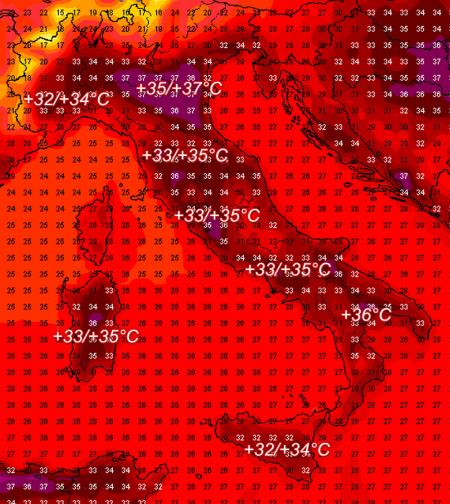 Analisi delle temperature massime previste dal modello americano per domenica 22 agosto: