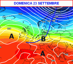 Il caldo settembrino verrà spazzato via da intense correnti nord-orientali che agiranno con prepotenza sui nostri termometri facendoli inevitabilmente scivolare verso il basso.