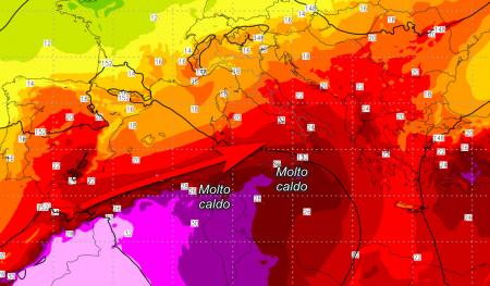Tra lunedì e martedì ci aspettiamo un cambiamento più deciso delle condizioni atmosferiche, con l’arrivo della parte terminale di una perturbazione che oltre a portare dei nuovi temporali, avrà il merito di dare luogo ad un ricambio d’aria. Le temperature perderanno qualche grado e diventeranno un po’ più gradevoli soprattutto al nord. Martedì e mercoledì si verificherà un temporaneo rialzo delle temperature al sud, dovuto al richiamo di venti meridionali lungo il lato ascendente della saccatura. Stima delle temperature previste dal modello LAMMA alla quota di circa 1500 metri martedì 18: