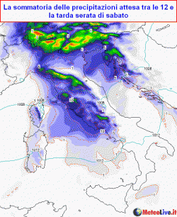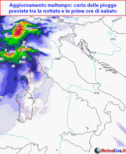 venerdì 14 novembre: in mattinata residui annuvolamenti sul basso Tirreno con basso rischio di pioggia, velature sulle Alpi, nubi basse in Liguria, banchi di nebbia o strati bassi in Valpadana con solo qualche schiarita. Sul resto del Paese bel tempo ma con qualche situazione nebbiosa anche nelle valli del centro. Nel corso della giornata, al più verso sera, peggiora al nord-ovest con le prime piogge, che in serata diverranno forti e temporalesche sulla Liguria. Nubi in arrivo anche su Toscana e Sardegna con locali rovesci. Temperature in lieve calo nei valori minimi.