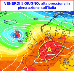 Da giovedì 4 fino a sabato 6 giugno prevalenza di bel tempo quasi ovunque. Qualche temporale possibile nel pomeriggio su Alpi, Dorsale appenninica e basso Tirreno. Caldo. Domenica 7 giugno qualche temporale in più su Alpi, nord-ovest, Appennino e Tirreno, bello altrove, sempre caldo. Da lunedì 8 fino a mercoledì 10 giugno instabilità in accentuazione con estensione dei temporali dal centro-sud al nord, temperature in calo.