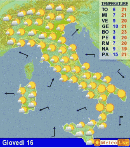 Se volete delucidazioni sul tempo a lungo termine leggete la rubrica "Fantameteo"; per il momento ecco la linea di tendenza del tempo fino a mercoledi 22 aprile