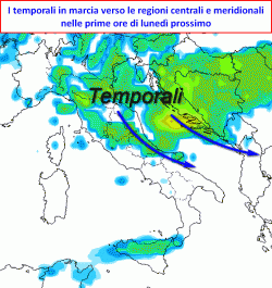 Questo cambiamento si manifesterà in modo più deciso a partire dalle regioni del nord con dei nuovi temporali tra venerdì e sabato. Poi nella notte tra sabato e domenica i fenomeni tenderanno a progredire verso le regioni del centro e del sud. I settori meridionali del nostro Paese verranno raggiunti per ultimi, i temporali su queste regioni vengono previsti soltanto dal prossimo lunedì e finalmente porteranno anche qui una riduzione del profilo termico.