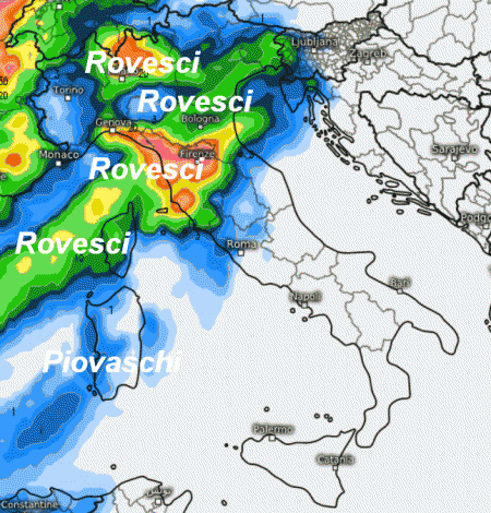 Il nord e la Toscana si ritroveranno sotto piogge e rovesci che tenderanno ad estendersi al restante centro, alla Campania e alla Sardegna nel corso della giornata di sabato 24 ottobre.