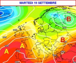 A partire da lunedì 18 settembre, la spinta dell’alta pressione delle Azzorre farà evolvere la saccatura verso l’Europa orientale.