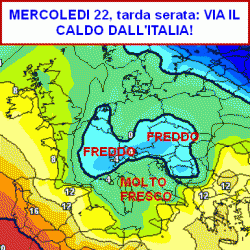 Anche lo Stivale Italico sarà comunque interessato da correnti molto fresche (fredde solo in alcuni casi) che dovrebbero irrompere da nord agitando i nostri mari, instabilizzando il tempo del centro-sud, ma soprattutto facendo calare i termometri verso valori più consoni alla stagione in corso.