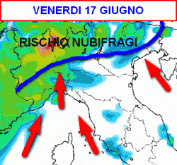 La cartina è valida per la giornata di venerdì 17 giugno, ma già giovedì 16 la situazione non sarà tanto diversa da quella illustrata.
