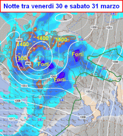 Una seconda e più intensa perturbazione agirà sempre al nord e al centro tra venerdì 30 e sabato 31 marzo.