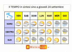 SINTESI PREVISIONALE SINO A GIOVEDI 24 SETTEMBRE: