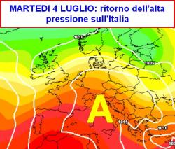 La rimonta dell’alta pressione dovrebbe garantire bel tempo sull’Italia da lunedì 3 fino a mercoledì 5 luglio; solo i settori alpini saranno interessati da qualche temporale di stagione, per il resto il tempo sarà buono.