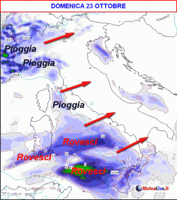 Partendo dal prossimo week-end, la giornata peggiore sarà domenica 23 ottobre, come si evince dalla prima mappa riportata.