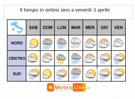 SINTESI PREVISIONALE sino a VENERDI 3 APRILE: