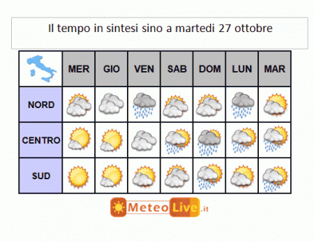 SINTESI PREVISIONALE sino a MARTEDI 27 OTTOBRE: