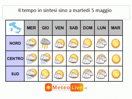 SINTESI PREVISIONALE sino a MARTEDI 5 MAGGIO: