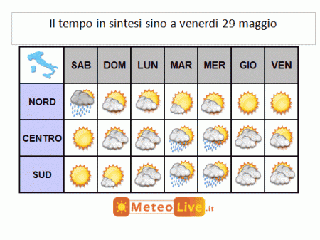 IL TEMPO IN SINTESI sino a VENERDI 29 MAGGIO: