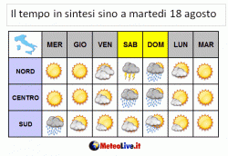 SINTESI PREVISIONALE sino a martedì 18 agosto: