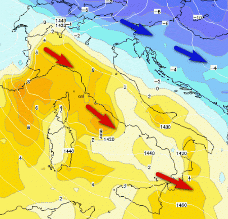Le correnti da nord-ovest si apprestano ad introdurre aria decisamente più mite sulla Penisola, specie in montagna, ma anche laddove si romperà lo strato di inversione che tiene separati i bassi strati dalla media quota.