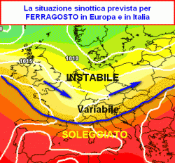 Fino a Ferragosto la stabilità estiva sarà spesso insidiata dalle correnti atlantiche, con disturbi al nord e parte del centro. A seguire l'espansione dell'alta pressione sul Mediterraneo darà probabilmente luogo ad un periodo di bel tempo.