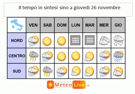 SINTESI PREVISIONALE sino a giovedì 25 novembre: