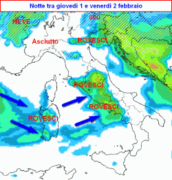 Venerdì 2 febbraio migliora al nord e al centro, ancora maltempo al sud con fenomeni anche intensi, ma in via di attenuazione nel corso della giornata.