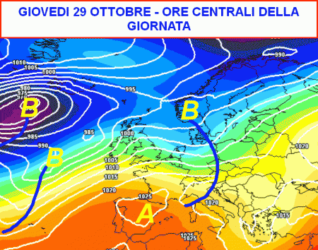 Come anticipato, si tratterà di un corpo nuvoloso molto indebolito che causerà una nuvolosità sparsa al centro-nord, ma fenomeni molto scarsi e limitati alle Alpi e all’alta Toscana sottofoma di qualche rovescio. A seguire, l’alta pressione che vediamo gonfiarsi sulla Penisola Iberica avrà campo libero sulla nostra Penisola a partire da venerdi 30 ottobre.