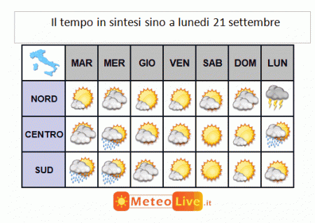 SINTESI PREVISIONALE sino a LUNEDI 21 SETTEMBRE: