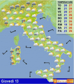 Il disturbo punterà successivamente verso le regioni meridionali dove sarà causa di qualche temporale specie nelle zone interne ed estreme.