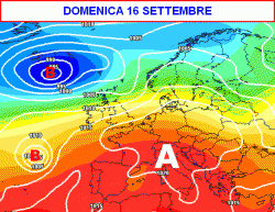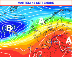La terza settimana di settembre vedrà un ulteriore approfondimento delle depressioni sul nord Atlantico e le prime infiltrazioni umide da ovest sull’Italia settentrionale e centrale (terza mappa).