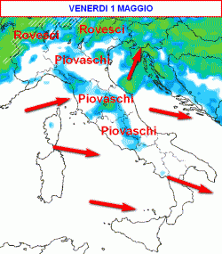 Il ponte del Primo Maggio non farà eccezione. La prima cartina inquadra la situazione prevista per le ore centrali della giornata festiva.