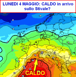 La seconda carta che vi mostriamo è valida per le ore centrali della giornata di lunedì 4 maggio. La fase calda mostrata dal modello americano è forse esagerata, tuttavia la possibilità che il nord Africa partorisca la prima ondata calda stagionale non è del tutto remota.