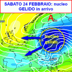 Sabato 24 febbraio (seconda mappa) sull’Italia avremo la "grande attesa" del nucleo gelido sopra menzionato.