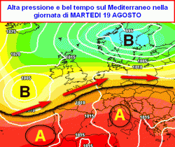 Passata la festa dell’Assunta, il tempo potrebbe mettere giudizio per qualche giorno su tutta l’Italia, anche al nord, stante la rimonta dell’alta pressione nel Mediterraneo.