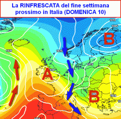 Possiamo affermare che avremo una situazione CAPOVOLTA rispetto a quella presente attualmente: non vi sarà più traccia dell’alta pressione africana sull’Italia, ma soprattutto la nostra Penisola verrà interessata da correnti molto più fresche (se non addirittura quasi fredde) provenienti dalle latitudini settentrionali.