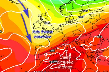 All’inizio della prossima settimana l’Europa sarà governata da una circolazione di tipo occidentale, quindi proveniente dall’oceano Atlantico. L’influenza africana sul nostro Paese perderebbe qualche colpo e questo se da un lato favorirà ancora qualche temporale dietro l’angolo special modo sulle regioni del nord, dall’altro dovrebbe mantenere un profilo termico più "sobrio" al sud. Tra lunedì e martedì insomma avremo caldo ma senza eccessi. A partire da mercoledì lo sviluppo di una nuova ciclogenesi sull’ovest Europa potrebbe riportare l’ennesimo ruggito dell’anticiclone africano sullo stivale.