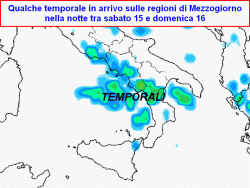 Sabato 15: temporali in arrivo sulle regioni di Mezzogiorno, colpiti soprattutto i settori meridionali dell’Appennino e la Sicilia. Calo generalizzato delle temperature su tutto il Paese ma più sensibile sui versanti orientali e sulla Valpadana.