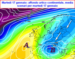 lunedi 16 e martedì 17 gennaio: calo termico generale, intenso al nord e su parte del centro, moderato al sud e sulle isole, probabile neve in arrivo su molte zone del centro e del sud ma la distanza temporale impedisce di formulare una previsione precisa.